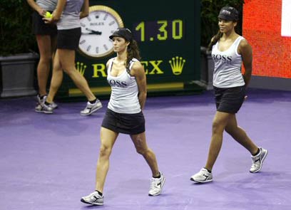 הדוגמניות-בול גירלס בטורניר מדריד. לפחות מהן רם נהנה (צילום: רוטרס)