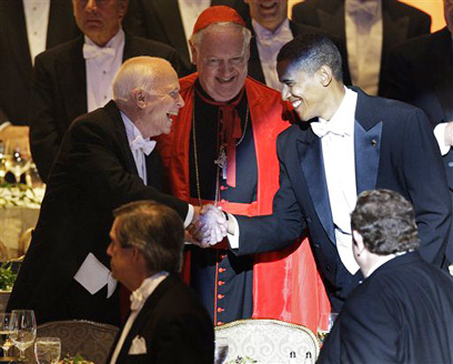 שני המועמדים לנשיאות ארה"ב החליפו בדיחות בארוחת ערב חגיגית בניו-יורק. אובאמה: "הגעתי לפה מקריפטון כדי להציל את כדור הארץ". מקיין: "שמח לראות פה תומכים - ערב טוב, הילארי"
