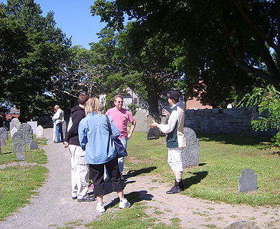 לא הרחק ממרכז המבקרים החדיש של העיר סאלם, נמצא בית הקברות המקומי. שם פגשתי בחור הלבוש בבגדים בסגנון המאה ה-17 ששמח להסביר באריכות את תולדותיו של השריף המקומי - תוך כדי שהוא נשען על קברו של הברנש - מי ששימש כשופט שדן את המכשפות המפורסמות מסאלם למוות בתלייה.