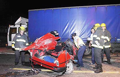 לילה של דמים: שלושה צעירים נהרגו הלילה (יום ה') בתאונת דרכים מחרידה בכביש החוף, סמוך למחלף בית ינאי. מכונית פרטית התנגשה במשאית שפרקה סחורה בשולי הכביש, גג הרכב נעקר ויושביו נהרגו. ההרוגים הם נגאטו זנבו בן 20, דסלין פנטה בן 17 וטגה דוויט בן 17 - תושבי שכונת גבעת אולגה בחדרה.