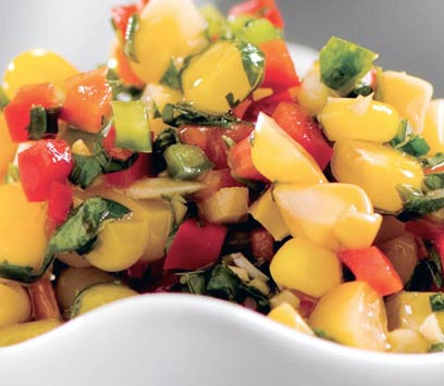 אחד המאכלים הטעימים ביותר שאכלתי אי פעם מתירס טרי, והמתכון המוצלח ביותר מבין שמונת המתכונים שניסיתי מתוך ספרה של השפית מיקה שרון, הוא סלסת התירס, שהיא לא פחות מגאונית. ניתן להגישה לצד מנת בשר או דג בגריל, פירות ים – או סתם כך, כסלט מרענן ומתוחכם. חשוב מאוד להשתמש בקלחי תירס טריים (ולא בתירס קפוא) ולא מומלץ לוותר על הכוסברה ועל הפלפל החריף, שתפקידם כאן חיוני בהחלט. אם חוששים מהחריפות, ניתן להסתפק במחצית הפלפל. חשוב לנקות ולקצוץ את הפלפל החריף כשהידיים עטויות בכפפות חד-פעמיות, שניתן להשיג בכל מרכול.