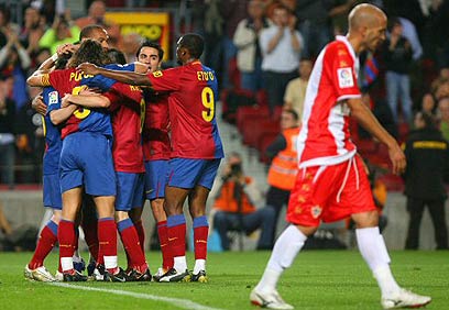 סמואל אטו כבש שלושער (4, 20 ו-24) תיירי הנרי הוסיף עוד אחד (13) ושער של דני אלבס בבעיטה חופשית סיים בליץ קטאלוני של חמישה כיבושים תוך 37 דקות. אלבארו נגרדו מאלמריה הורחק (30).