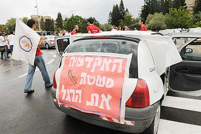 הסטודנטים בדרך לכביש 1 (צילום: ירון ברנר)