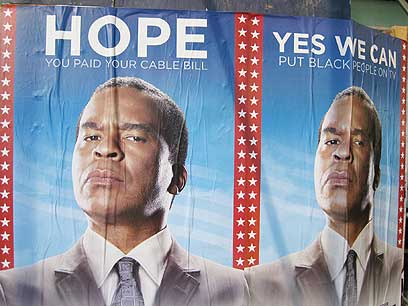 פוסטר של "The Chocolate News", פרודיה על שלטי בחירות של אובאמה (צילום: דנה צימרמן)