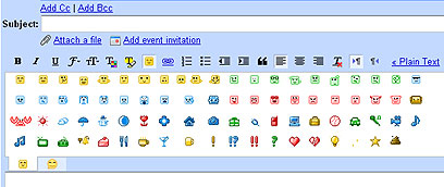 לצעירים ברוחם הוסיפה גוגל ל-Gmail אמוטיקונים - אייקונים קטנים וצבעוניים שמקשטים את המייל, בדומה לסמלים השמישים בתוכנות מסרים מידיים. כדי להוסיף אמוטיקונים יש ליצור מייל חדש (Compose Mail) ולוודא כי הוא מוגדר במצב של עריכה מתקדמת (Rich Format) ולא טקסט פשוט. בסרגל הכלים העליון יופיע סמל של סמיילי צהוב, ולחיצה עליו תציג את האמוטיקונים להוספה.