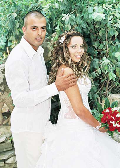 ב-26.8.08, לאחר תשעה חודשים בלבד של זוגיות מאוהבת, הם באו בברית הנישואים באולמי "אור המילניום" בצומת קרית אתא. את ירח הדבש בחרו לבלות בטיול למדריד וברצלונה.