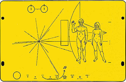במארס 1972 טמנו אנשי נאס"א דיסקית אלומיניום מצופה בזהב בחללית "פיוניר 10" ושיגרו אותה לחלל. כמעט שנה אחר כך, באפריל 1973, שוגרה דיסקית זהה ב"פיוניר 11." פיוניר 10 נמצאת כבר מזמן בנקודה הרחוקה ביותר בחלל שאליה הגיע המין האנושי. בעוד שני מיליון שנה היא אמורה להגיע אל כוכב אלדברן, "העין של קונסטלציית שור". בשל המרחק, אבד הקשר עם החללית. פיוניר 11 נשלחה לקצה המנוגד של מערכת השמש. גם איתה אבד הקשר.