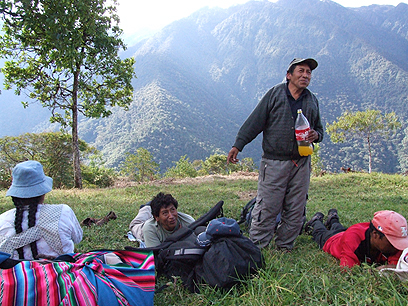 לעת ערב, אחרי צעידה של שעות, מקימים מחנה קטנטן של אוהלי סיירים בנקודת היישוב הזעירה צ'יאפמפה,(Challapampa) שכולה צריף עץ וכמה סככות. אנחנו (חמישה טיילים וצוות של כמה פורטרים וטבחית) מתמקמים במחנה. ערפילים דקים עולים מהעמק, להקה צווחנית של ציפורי איביס חולפת במטס אווירי. לפני שמזדחלים אל שקי השינה, בתחתונים תרמיים ובמעילי פליס, בוהים במשך דקות ארוכות בשמיים מכוסי הכוכבים של חצי הכדור הדרומי, מאתרים את צלב הדרום ומקשיבים לנהר הזורם למטה. חיים פה גם דובים, אבל אין מה לדאוג, הם צמחוניים. אפשר לישון בשקט.