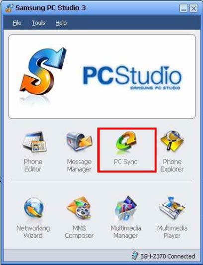 לאחר הרצת התוכנה, יעלה מסך הפתיחה של תוכנת הסנכרון של סמסונג. בהפעלת התוכנה הראשונה יעלה אשף התחברות שיאפשר להגדיר את חיבור המכשיר למחשב. ניתן לחבר את המכשיר באמצעות כבל נתונים (שבדרך כלל מצורף בערכת המכשיר), Bluetooth או חיבור אינפרא אדום. יש לעקוב אחר הוראות הצימוד בין המכשיר למחשב ולתוכנה. בכדי להתחיל את תהליך הסנכרון יש לבחור את האפשרות Pc Sync.