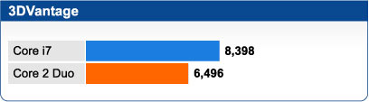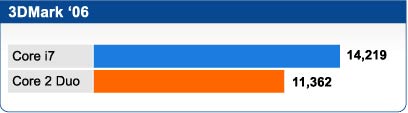 במבחני תלת ממד של Futuremark, כמו 3DVantage ו-3Dmark06 הישן יותר, ה-i7 מוציא תוצאות נאות. בגירסת 2006 של תוכנת הבדיקה נרשם שיפור של 25 אחוזים בביצועים, ואילו בגירסה המתקדמת יותר של הבדיקה נרשם שיפור דרסטי אף יותר, של 29%. שיפור נאה, אך עדיין לא מצדיק את ההוצאה של כמה מאות דולרים נוספים.