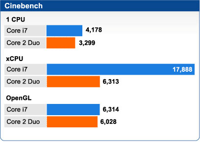 כמחשב שמיועד לגיימרים, ציפינו לביצועי מולטימדיה גבוהים, ואכן לא התאכזבנו. במבחן Cinebench הבוחן פריסה והצגה של וידאו, פעילות של מעבד אחד (כלומר ליבה בודדת במקרה שלנו), הציגה תוצאה של 4,178, וגם מבחן ה-OpenGL הראה שיפור מינורי יחסית לעומת ה-Core2Duo. אם נסתמך על השיפור הזה, הרי שאכן היה נוצר שיפור בעיצוב הליבה הבודדת. ובריבוי מעבדים השיפור בולט לעין – הציון קופץ ל-17,888, כמעט פי שלושה ממעבד הדור הקודם.