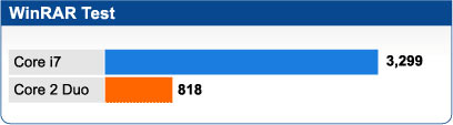 ניסינו "להתקיל" את המערכת עם פעולות כבדות באופיין כמו דחיסת נתונים. במבחן WinRAR, ה-i7 הציג תוצאה גבוהה כמעט פי ארבעה. שוב, ניתן לייחס את ההתמודדות שלו עם פעולת עיבוד מורכבת יחסית שכזו, לריבוי הנימים ולארכיטקטורה החדשה.