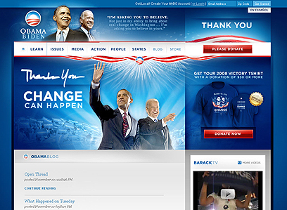 "אנחנו רואים בהשוואה הזו מחמאה", אמר לוי. "הקו המנחה בקמפיין האינטרנטי של הליכוד הוא פתיחות ושקיפות מקסימלית כלפי הציבור, תוך שיתוף מקסימלי שלו בתהליך הבחירות". אפשר רק לתהות - אם נתניהו מאמץ את האתר של הכוכב החדש בשמי הפוליטיקה האמריקנית כמקור השראה, אולי ייאמץ גם את המצע?