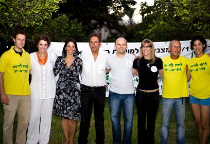 לדיאנסקי (רביעי מימין, בחולצה בהירה) ואנשי "לתת לחיות" (צילום: רונן מחלב)