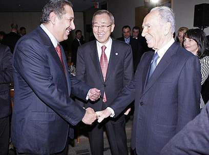 הנשיא פרס לוחץ ידיים עם שר החוץ של קטאר (צילום: רויטרס)