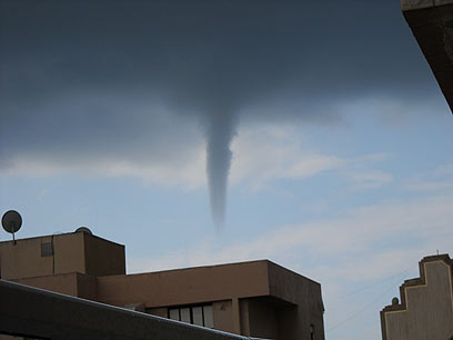 ישי טיבו, בן 18 מנתניה, זכה לראות את התופעה הנדירה, בעוד בוקר שיגרתי על הכורסה. "כשהייתי בחדר ירד גשם ממש חזק. אמא שלי התקשרה ואמרה לי להוריד את הכביסה מהמרפסת. פתאום הרמתי את העיניים וראיתי את הטורנדו". במהלך השיחה הלחיץ טיבו את אימו וגרם לה לחזור הביתה, אבל במהלך הזמן הזה הסופה כבר שככה.