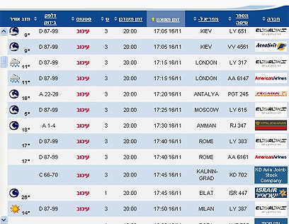 רק עיכובים. לוח הטיסות של נתב"ג באתר רשות שדות התעופה