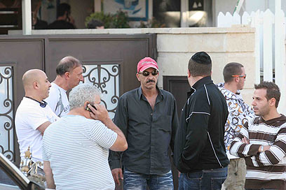 מקורבי אלפרון בכניסה לביתו ברעננה (צילום: עידו ארז)