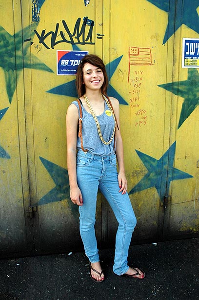 טל (17) – חולצה, "Jen"; חצאית, יד שנייה; תיק, מפולין; סנדלים, "ביג טום";