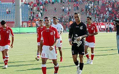 רחמים ושחקני ב"ש יורדים מהמגרש. הקהל שרק בוז (צילום: ישראל יוסף)