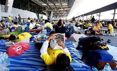 פעילי האופוזיציה ממשיכים לשבש את פעילות נמלי התעופה בבנגקוק. הממשלה החליטה להפעיל תקנות לשעת חירום אך ורק בנמלים כדי שתוכל להפעיל כוח רב כלפי המפגינים