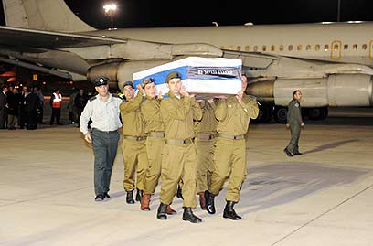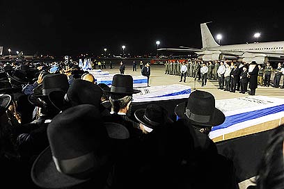 סוף המסע לארץ הקודש. מטוס חיל-האוויר ובו גופות הנרצחים בבית חב"ד במומבאי נחת אמש (יום ב') בנתב"ג. לאחר הנחיתה התקיים טקס צנוע בנמל התעופה, בו השתתפו נציגי המשפחות. במהלך הטקס נשאו הנוכחים תפילת אל מלא רחמים ולאחר מכן הועברו הגופות למכון הפתולוגי באבו כביר, לצורך השלמת ההליכים לקראת קבורתם.