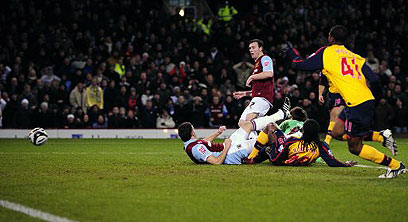 מקדונלד מוריד את שחקני ארסנל לרצפה (צילום: רויטרס)
