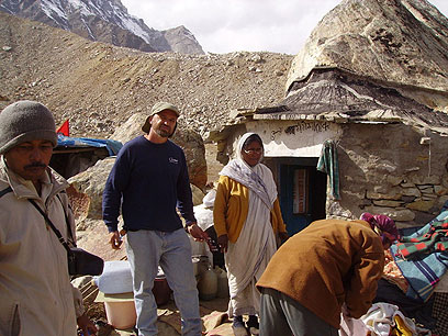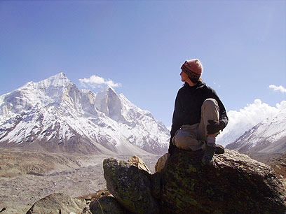 הקרחון עצמו דומה לזנב של דרקון ענק, המתפרס רחוק מעלינו בעמק צר שבין הפסגות. הקרחון סוחב איתו בדרכו למטה כמות בלתי נתפסת של סלעים ולנגד עינינו ממש שוחק את הרי ההימלאיה. השביל שבחרנו עולה ויורד בין גלי האבנים העצומות האלה. די קשה לנו למצוא את הדרך - השביל משתנה כל הזמן, כיוון שהסלעים שנראים לנו יציבים, נעים למעשה במהירות של כמה מטרים ליום אל עבר העמק. לאחר החצייה של הקרחון אנחנו מטפסים על גבעה תלולה כדי למצוא תצפית טובה על הפסגות שגובהן כשבעה קילומטרים ומעלה. לפי האגדות, על אחד ההרים האלה מתגורר האל החשוב ביותר בהודו, האל האחראי על ההרס ועל ההתחדשות, האל שיווא.