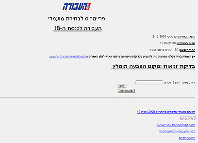 "אתר האינטרנט מוכן ויעלה בימים הקרובים - בגלל הפריימריז הוא התעכב", אומר ליאור רוטברד, דובר העבודה. "דווקא יש באתר ערוץ קשר עם הבוחר, אפשרות לדעת איפה להצביע, פיזור הקלפיות ומידע נוסף. מייד לאחר הפריימריז השבוע, האתר (החדש - א.ש.) עולה לאוויר - כך תוכנן מלכתחילה, אך הפריימריז נדחו".