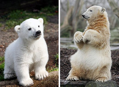 אך הימים חלפו, ולנגד עיני עולם הפך קנוט מגוש פרווה צחור במשקל של פחות מקילוגרם שלוגם חלב מבקבוק, לדב קוטב אפרורי ששוקל יותר מ-200 קילוגרם, ומתנשא לגובה של יותר משני מטר.