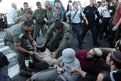 למעלה מ-100 פעילי ימין חסמו את כביש ירושלים-ת"א בכניסה לבירה. השוטרים פינו את המפגינים, אך הם חזרו לכביש. 20 בני אדם נעצרו
