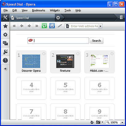 תכונה ותיקה בולטת שייחודית ל-Opera היא האפשרות ל"חיוג מקוצר": בפתיחת לשונית חדשה, יופיעו משבצות שמייצגות תשעה אתרים לבחירתכם, כולל סקרינשוט של העמוד, ולחיצה תוביל אליו מיידית. סוג של שכלול על שיטת הסימניות הוותיקה. בדפדפנים אחרים ניתן להוסיף תכונה זו על-ידי התקנת תוסף, אבל ב-Opera בחרו לשלבו כברירת מחדל.