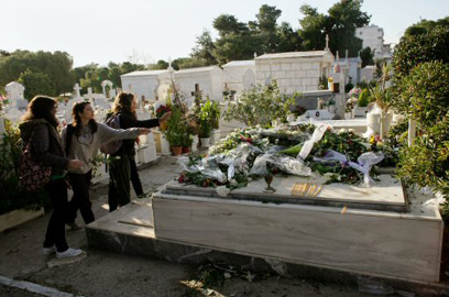 אנשים פוקדים את קברו של גריגורופולוס, שנטמן אתמול (צילום: AFP)
