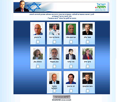 מה משותף לרוקח, יבואן אלכוהול, נהג מונית, סופרת ילדים וסתם "אכפתניק"? לא מדובר בתחילתה של בדיחה, אלא ברשימת המשתתפים היום (ד') בפריימריז הייחודיים של מפלגת "ישראל חזקה" בראשות איש העבודה לשעבר, אפרים סנה. המפלגה החדשה תציע לראשונה בישראל למתפקדיה להצביע רק באמצעות האינטרנט.