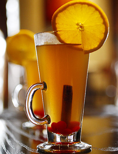 - כשהסיידר רותח יוצקים לתוך הכוסות ומוסיפים את הברנדי.
