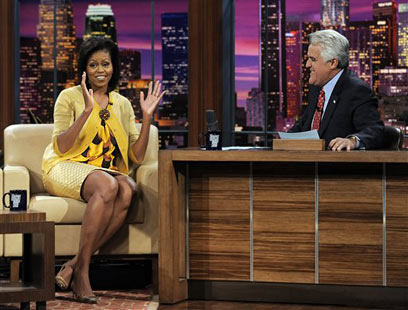 ג'יי לנו מראיין את מישל אובמה. הופך את לוח השידורים (צילום: AP)
