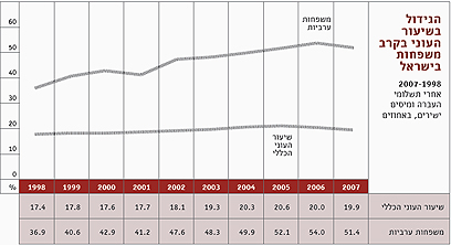 שיעור העוני בקרב משפחות ערביות, מול כלל האוכלוסייה