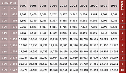 התמקדות הצמיחה באזורי המרכז התמקדה בכמה ענפים. ענף הבנקים, חברות הביטוח וקופות הגמל גדלו ב-102 אחוז, ותעשיות ההיי-טק ב-47 אחוז. אבל התעשיות המסורתיות - רק ב-6 אחוזים.