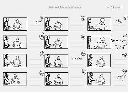 "ואלס עם באשיר", גרסת הסטוריבורד (איורים: דוד פולונסקי)