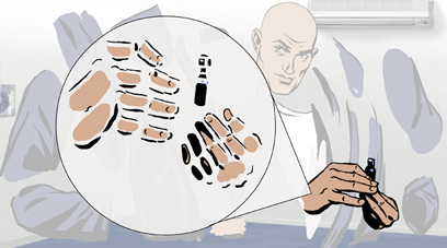 פרנקל, בדגש על פירוק כפות הידיים לחלקי האנימציה הבסיסיים שלהן
