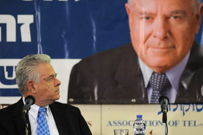אפרים סנה במסיבת העיתונאים (צילום: ירון ברנר)