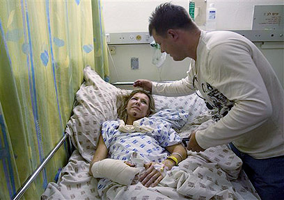 אחת הפצועות בבית החולים, עם קרוב משפחה (צילום: AP)