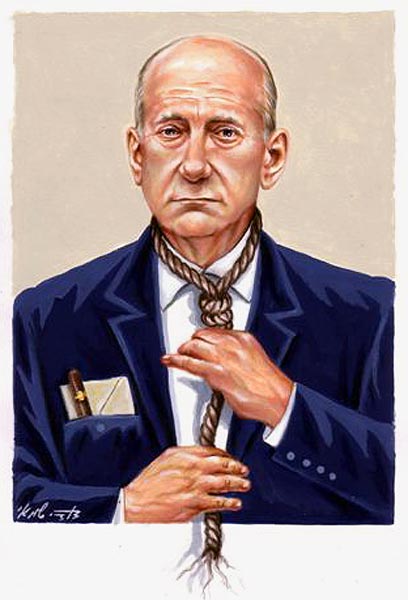 אולמרט. החבל מתהדק סביב צווארו (איור: דודו שמאי)