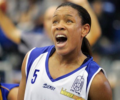 אדווינה בראון ברבע הגמר. קלעה 12 נקודות לחולוניות (צילום: אלי אלגרט)