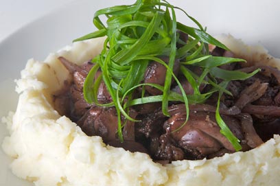 - מומלץ להגיש על מצע פירה. ניתן לקשט ברצועות בצל ירוק.
