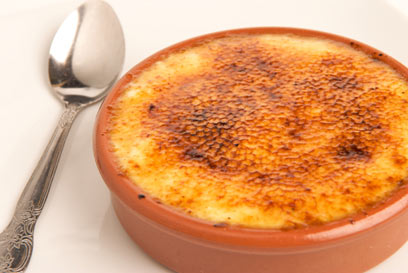 - הגשה: לפני ההגשה, מפזרים שכבה אחידה של סוכר חום על הקרם ושורפים/ ממיסים בעזרת ברנר (מבער) עד להשחמת הסוכר. מגישים מיד. אפשר לקשט בקונפיטורת פטל שחור/ אוכמניות/ דובדבנים תוצרת ביתית או קנויה, ובעלי נענע טריים.