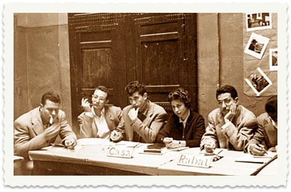 6. חברי מזכירות התנועה במרוקו - מרבט וקזבלנקה - בכינוס השישי. מימין: אלבר, מירי, שאול, נינוס, דוד בן נעים