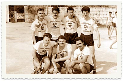 1. שליחים ובוגרים של התנועה בקזבלנקה. מימין: אמנון, שמשון, דוד, רנה, קוקו, יצחק צרפתי, אברמל'ה