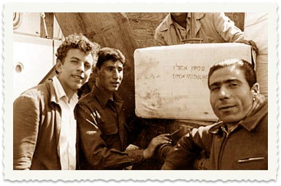 14. מטעינים את המזוודות של העולים בנמל קזבלנקה. על המזוודה רשום: "שמעון אסולין"