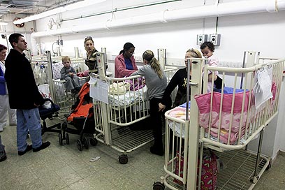 מאושפזים במקלט בבית החולים ברזילי באשקלון (צילום: צפריר אביוב)